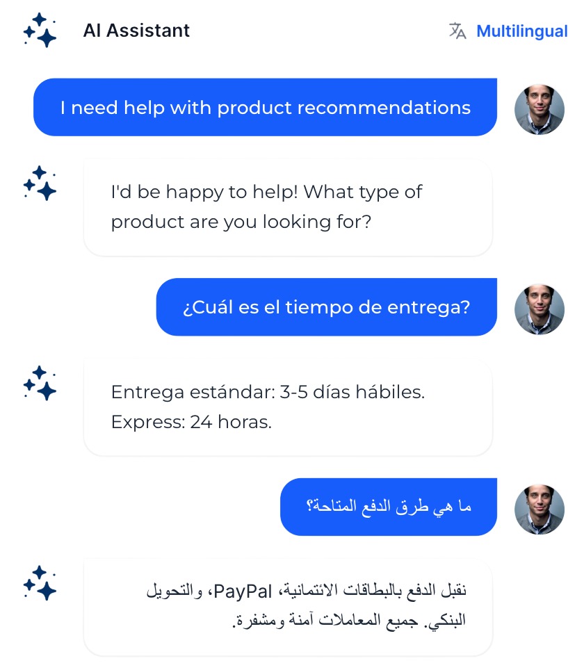 Communicate naturally in your users’ language—text or voice, with smart translation that preserves intent and tone.