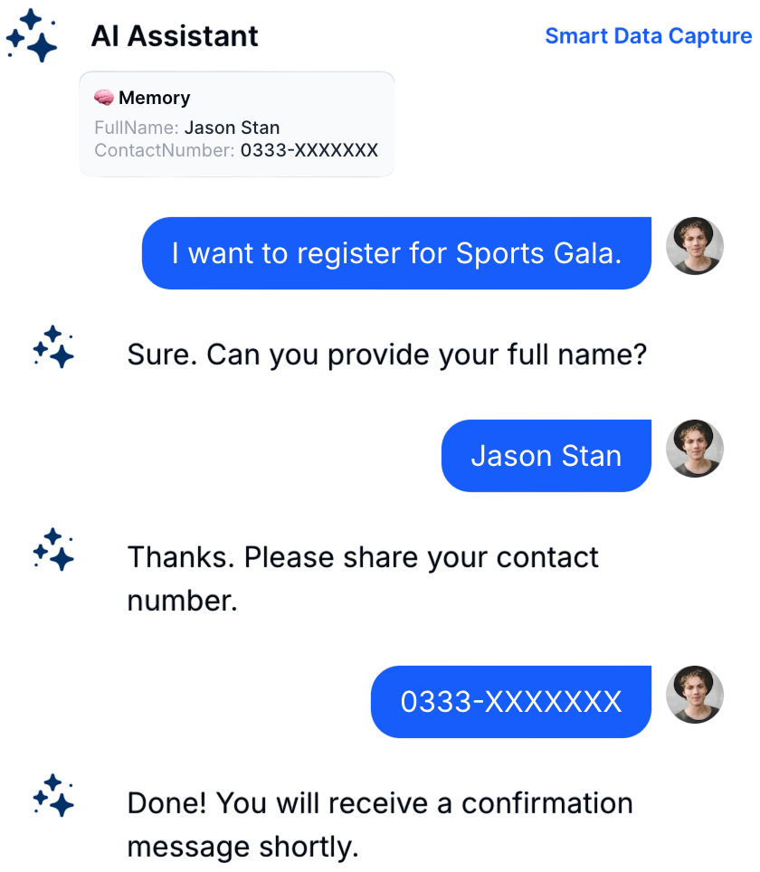 Automatically capture structured data from conversations—build rich user profiles, qualify leads, and hand off with full context.